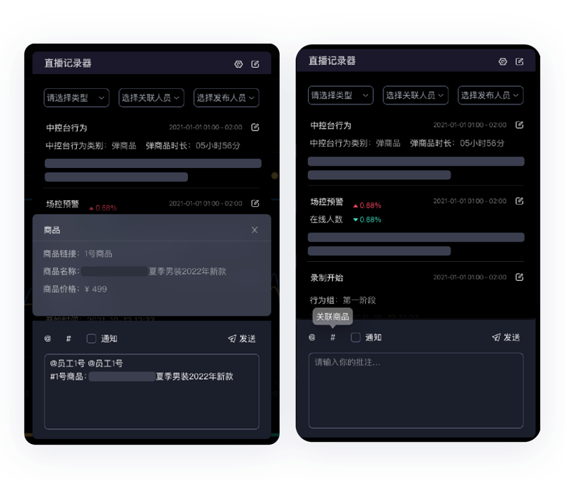 直播过程不再苦累,播中即时对应直播计划,自动记录直播变动点并实时通知,