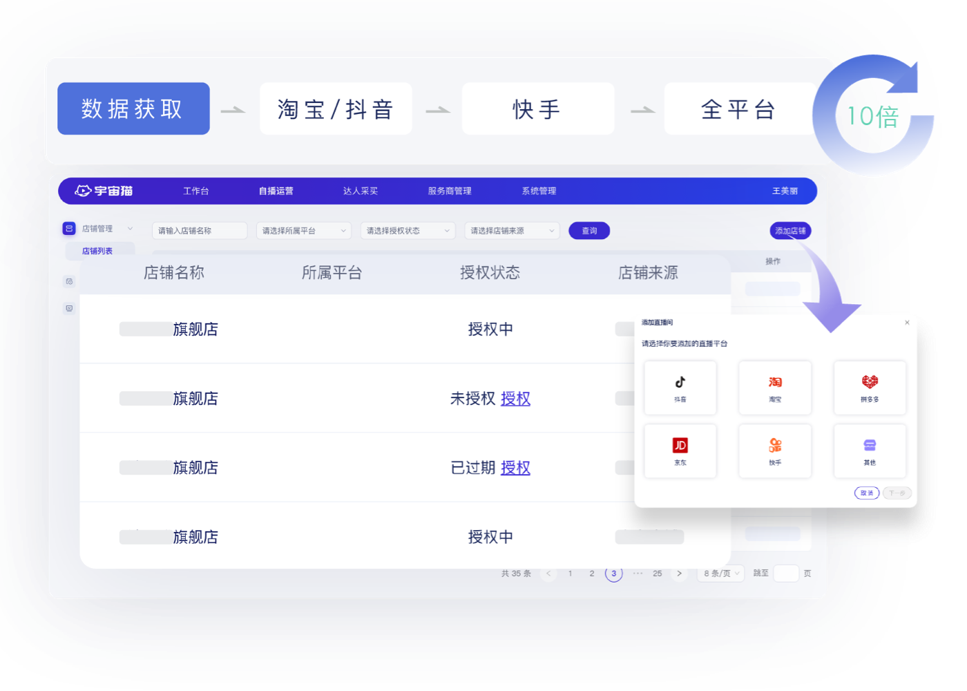 多平台直播间管理,关键信息、数据一目了然,让直播不再手忙脚乱