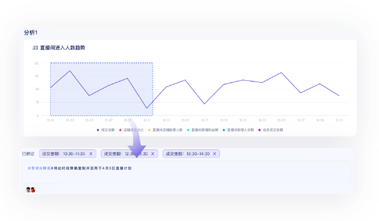 体系化的复盘模板,便捷的标记操作,关联历史运营策略和直播数据,集成企业